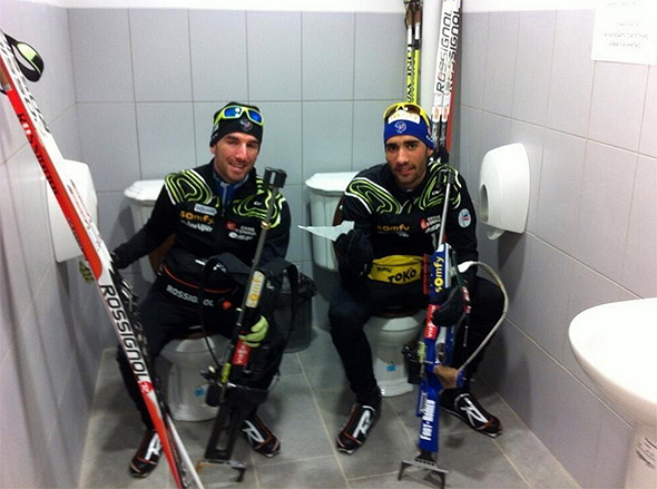 После этого каждая команда посчитала своим долгом сделать фотографию на этих унитазах-близнецах.