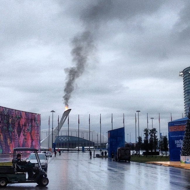 На выходных в Сочи прошло тестовое зажигание олимпийского огня. Если раньше олимпийский огонь в руках российских чиновников и спортсменов постоянно гас, то сейчас от него повалил черный дым. Украинцы в сети шутят, что это майдановцы добрались до Сочи и жгут шины.